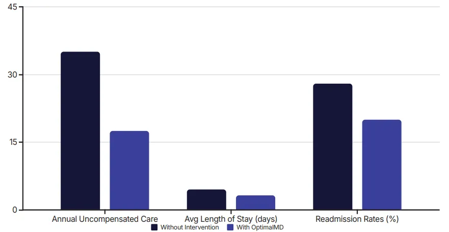 With the OptimalMD partnership, we project cost savings of $12-$20M per year by reducing uncompensated care by up to 50%
